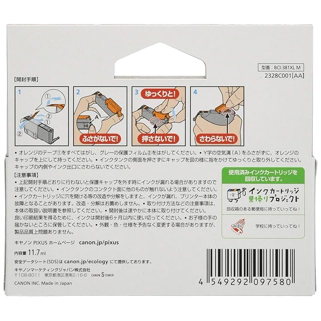 商品名:キヤノン Canon 純正インクカートリッジ BCI-381XLM マゼンタ 大容量タイプ
