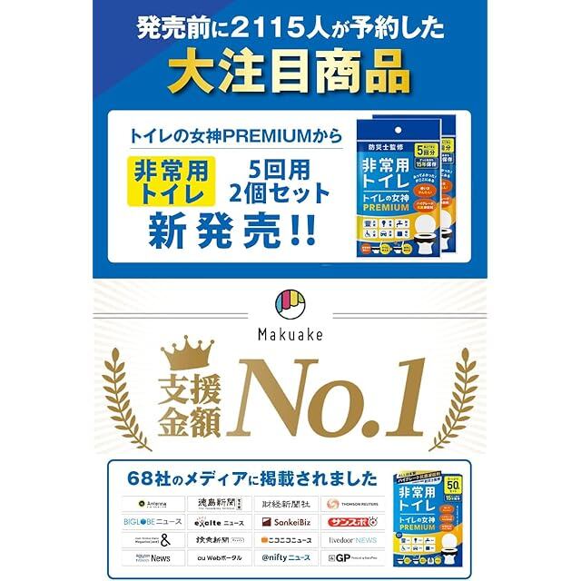 商品名:どこでも簡単トイレ トイレの女神PREMIUM 携帯トイレ 簡易トイレ 【防災士が監修】 15年保存&日本製 携帯トイレ 防災トイレ 非常用トイレ 防災グッズ 防災ガイドブック付き (5回用×2セット)