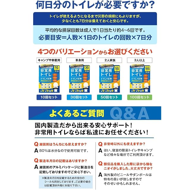 ✅【簡易トイレといえば、やっぱり "トイレの女神PREMIUM" 】トイレの女神PREMIUMは、国内の数々のアワードを受賞し、日本企業開発の徹底した品質管理で、もしもの時にも安心で使いやすいコストパフォーマンスの良い商品をお届する防災ブランドです。日本の福岡県で製造した凝固剤は、防災士監修のもと改良を重ね、強力な消臭・抗菌効果を実現しました。