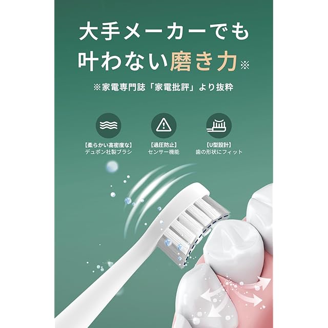商品名:「家電批評」2024年連続ベストバイ一位受賞(三年連続) 殿堂入り 電動歯ブラシ エペイオス(Epeios) 音波歯ブラシ ソニック 歯ブラシ 電動 ブラシヘッド2本 IPX7 防水 歯磨き Type-C 充電式 180日間使用 誕生日 ギフト プレゼント Matcha