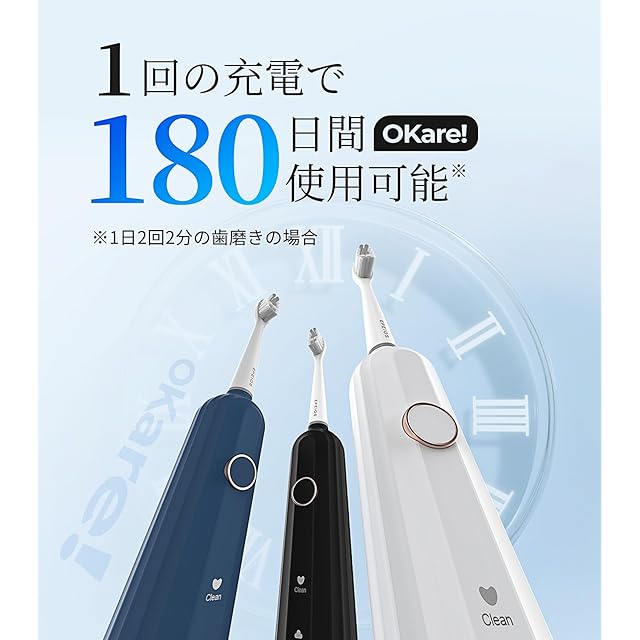 【180日間使用可能 ・充電リマインダー ・メモリー機能】充電式電動歯ブラシは大容量2200mAhバッテリーを搭載し、Type-Cで1回の充電で180日間(半年)電動はぶらしを使用可能です。バッテリーが切れそうな時にはお知らせ可能、前回使用したブラッシングモードを記憶する機能が付きます。