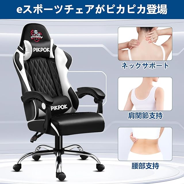 商品名:PikPok ゲーミングチェア オフィスチェア デスクチェア 疲れにくい gaming chair ハイバックランバーサポート pcチェア 椅子人間工学(黒と白)