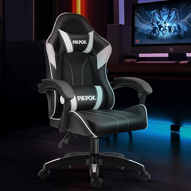 PikPok ゲーミングチェア pcチェア 椅子 デスクチェア ゲーム用チェア リクライニング パソコン ハイバック ヘッドレスト ランバーサポート ひじ掛け付き 高さ調整機能 PUレザー (黒と白)