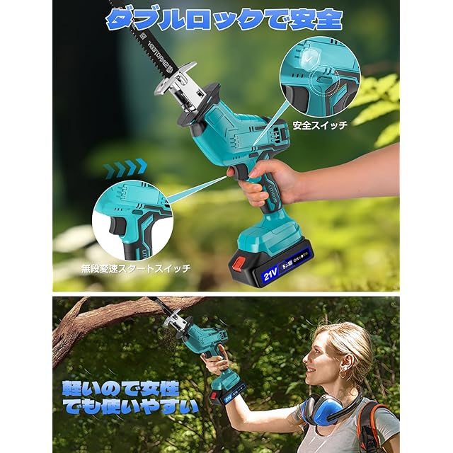 商品名:XGAGHBレシプロソー 電動 ノコギリ【2000mAh*2個バッテリー付き&替刃8本】無段変速 21V 充電式ノコギリ セーバーソー 小型 枝切り 竹を切る 庭木の剪定 粗大ごみ切断 木材切断 金属切断 収納ケース 付き 日本語取扱説明書付き 青い
