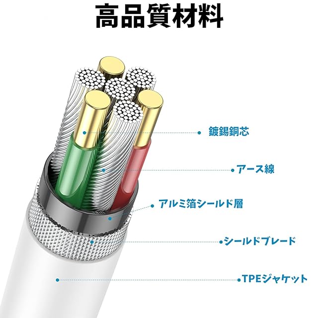 【安全保護】:コネクタ部分にスマートチップが内蔵されているため、接続された端末を自動的に検知し、デバイスに最も良い電流出力で充電します。56KΩのプルアップレジスターを採用してケーブル内部の抵抗を最小化しておりますので、過電圧、過熱、過電流、ショート防止等の多重保護で、ケーブルの安全性と信頼性を向上させます。このUSB Type-Cケーブルはご自宅や職場などに置いたり、旅行や出張などの持ち運び用の予備とするなどの場用に大活躍!