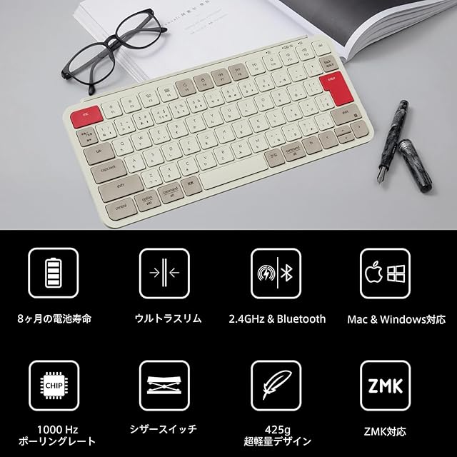 商品名:【国内正規品】Keychron B1 Pro ウルトラスリム ワイヤレスキーボード、ZMKカスタマイズ、シザースイッチ、2.4 GHz/Bluetooth 5.2/有線接続、ロングバッテリーライフ、Mac Windows Linux対応 (レトロレッド, JISレイアウト)