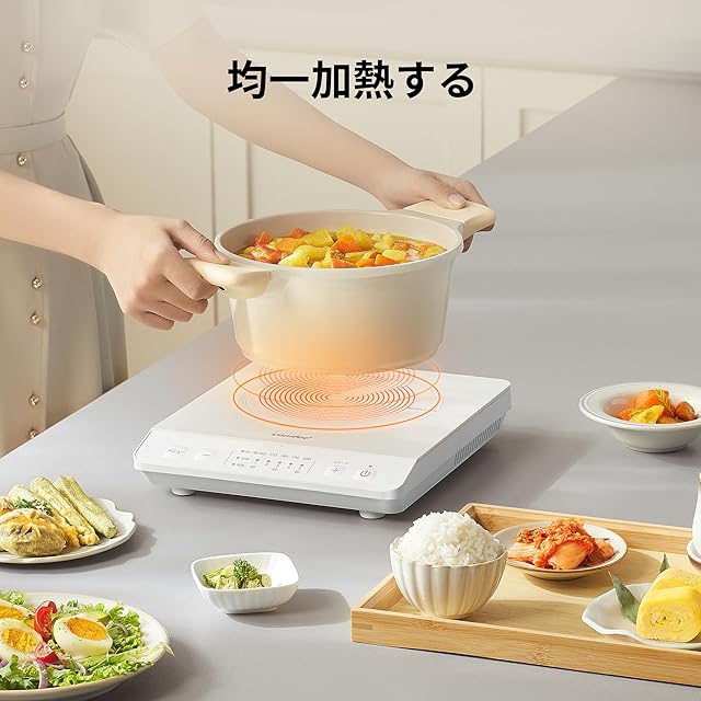 COMFEE' クッキングヒーター IH式 薄型 1000ワット 3種メニュー 揚げ物 3段保温 炒め料理 白