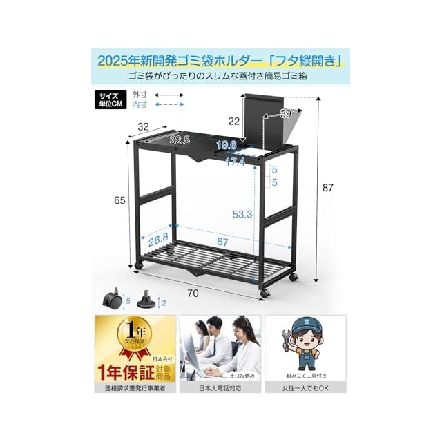 【安心な日本サポート・品質2年】お買上げより2年を提供しております。万が一、故障や不具合が生じた場合は無償で修理、又は当社の判断により交換させていただきます。※電話対応も可能です(土日祝休み)。※「TTWOゴミ袋ホルダー」は弊社デザイナーが独自のこだわりを持って完成させたオリジナル商品です。