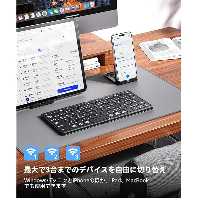 ✅【5システム対応&3台設備まで切替使用】ブルートゥース キーボード は iOS/Windows/Android/Mac/Google 5つのシステムに適用しております。また、3台マルチペアリングに対応し、タブレット、パソコン キーボード、スマホの間、ワンタッチでデバイス間を切り替え可能です。使いやすいです。