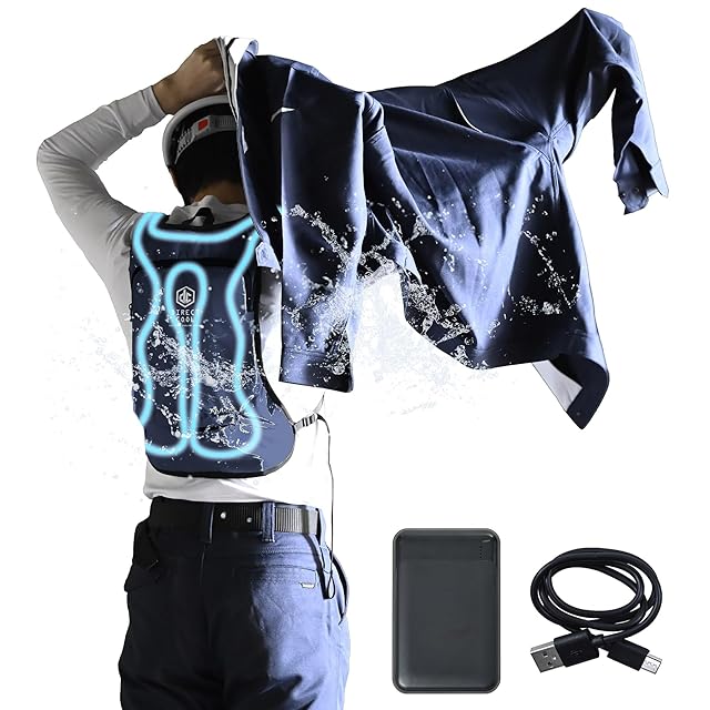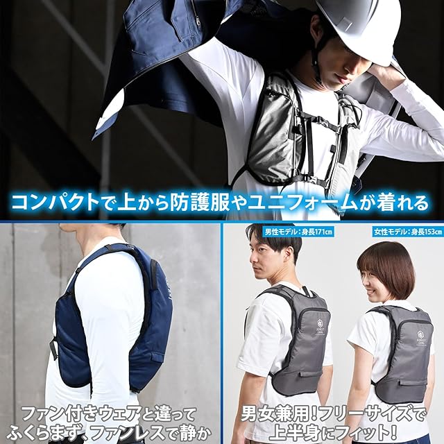 【材質】ウェア素材:表地/ポリエステル 裏地/ポリエステル、タンク材質:TPU、冷却部仕様:アルミ/ポリウレタン、冷却チューブ:シリコーンゴム