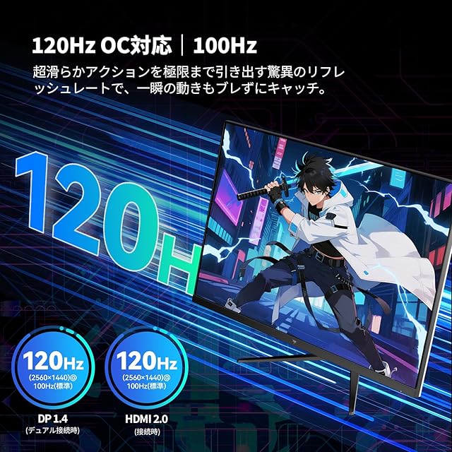 【スムーズな100Hz(120Hz OC対応)表示】基本100Hzのリフレッシュレートに加え、120Hzまでオーバークロック可能。Adaptive Sync(FreeSync対応)技術により、ゲームや動画再生時の画面のティアリングやカクつきを軽減。FPSやレーシングゲームなど、高速動作が必要なコンテンツでも滑らかな映像を提供。