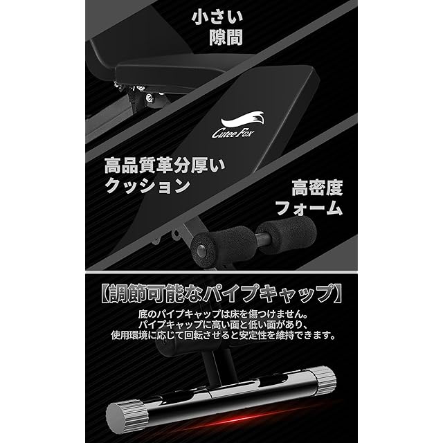 ✅【調節可能なパイプキャップ】底のパイプキャップは床を傷つけません。パイプキャップに高い面と低い面があり、平ではない地面によって、運動時ダンベルベンチが揺れてバランスが取れない場合は、脚部のキャップを回転し、ダンベルベンチのバランスを調節することができます。