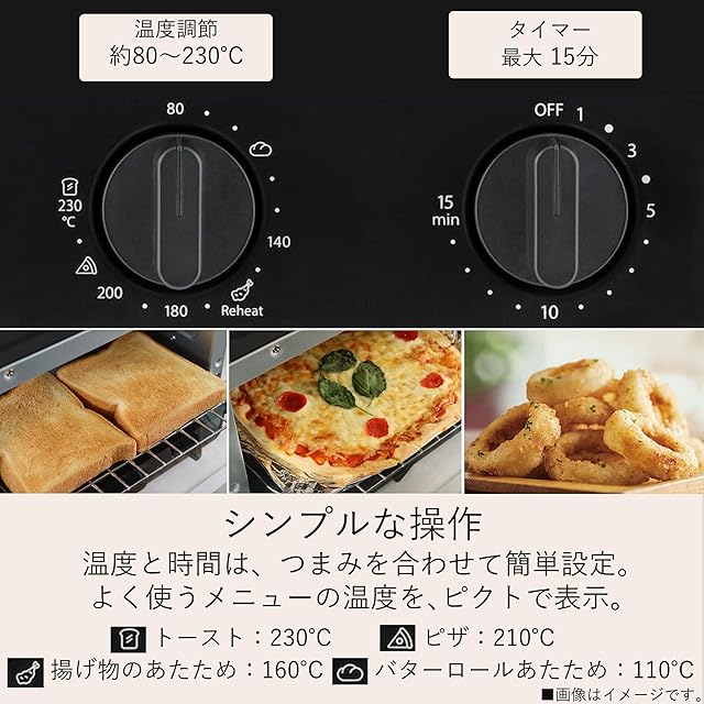 ✅「温度調節機能」約80℃~230℃で多彩なメニューに対応。タイマー最大15分。