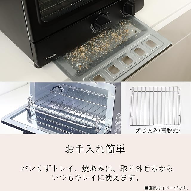 TOSHIBA(東芝) トースター オーブントースター 2枚焼き HTR-PZ3(K) ブラック 温度調節機能付き 受皿付き タイマー15分