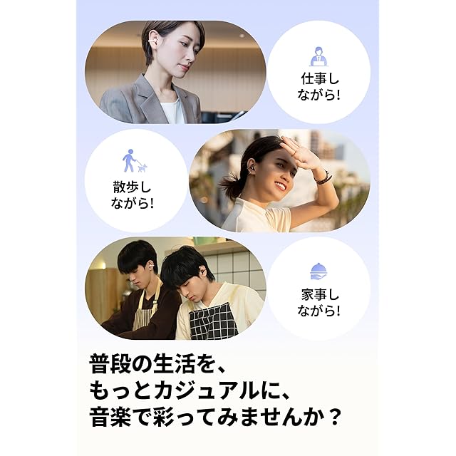 【 SOUNDPEATS UUイヤーカフ、至上の体験!】U字型のコンパクトで軽量なボディとスマートなデザインにより、着けているのを忘れるほど快適な装着感を実現します。イヤーカフ型のイヤホンなので、アクセサリーのように耳の軟骨に挟むだけで使用でき、メガネやサングラスをかけたままでもご使用いただけます。カナル型イヤホンで気になる蒸れ・痛み・かゆみ、骨伝導型や耳掛け型で起こりがちな耳への負担、サングラスやメガネ、マスクとの干渉といった問題は発生しません。イヤホンの重さもわずか4.73g、羽のような軽さです。長時間の使用でも耳への負担を最小限に抑え、安定した装着感を提供します。