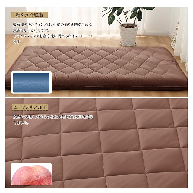 【心地よい肌触り・五層式敷布団】両面の表層はふわふわの中綿で、寝心地も抜群です。不織布は中棉とウレタンを分離し、中棉の形状を維持しやすく、つぶれず、耐久性があります。約5cmのウレタンが体を効果的に支え、敷き布団が崩れにくいです。ウレタンが入っていることで、全身をバランスよく支え、S字の寝姿勢を保ってくれ、快適に眠るとこができます。