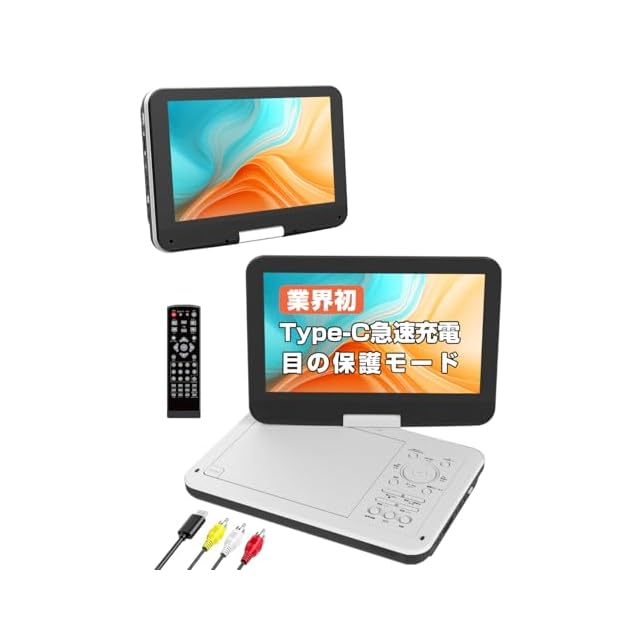 商品名:ポータブルDVDプレーヤー【業界初 type-c急速充電 目の保護モード】12.5型 10.5インチ液晶 cd dvdプレーヤー ポータブル 最大5時間連続再生 リージョンフリー CPRM対応 レジューム機能 270度回転 TV同期可能 SDカード/USBに対応 軽量 持運び 操作簡単 日本語説明書 VOSCORDER