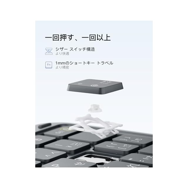 超薄軽量:ipad a16 キーボードの厚さはわずか7.6mm(コイン3枚重ねた厚さ)、重量はたった450g。他社フル機能キーボードより200g軽量です。通勤時はビジネスバッグに詰め込み、出張時はリュックに入れてもスペースを取らず、片手で簡単に持ち運べます。地下鉄で急な文書修正やカフェでの待ち時間にメール返信、モバイルワークがこれまで以上に楽に