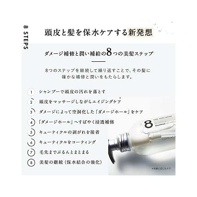 ダメージを受けたスカスカ髪へ、水分を届けて束縛・保水し、髪が毛先までするんとまとまります。キメ細やかでクリームのような泡立ちのシャンプーが、潤いを与えながら頭皮環境を整えて、頭皮と髪の汚れをすっきり落とします。
