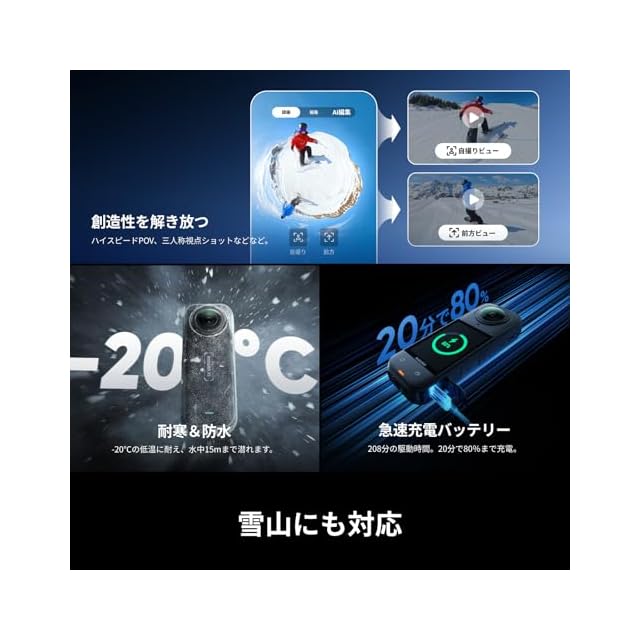 商品名:【高梨沙羅さん愛用】Insta360 X5 通常版 |8K対応・防水・360度全景アクションカメラ|夜景に強く“見えない自撮り棒”対応・手ブレ補正・交換レンズ&長時間バッテリー搭載!