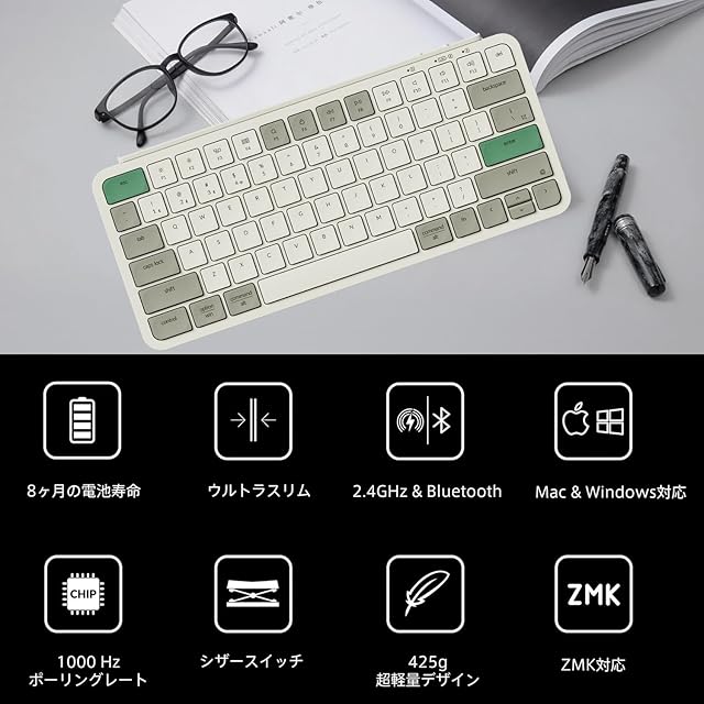 商品名:【国内正規品】Keychron B1 Pro ウルトラスリム ワイヤレスキーボード、ZMKカスタマイズ、シザースイッチ、2.4 GHz/Bluetooth 5.2/有線接続、ロングバッテリーライフ、Mac Windows Linux対応 (レトログリーン, USレイアウト)