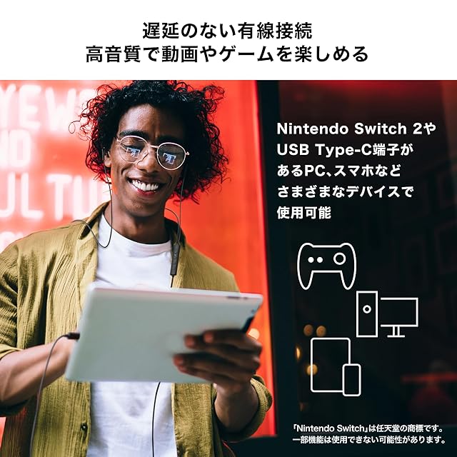 さまざまな機器とつながる高音質 DAC(D/A コンバーター)を内蔵:USB Type-C端子にそのまま接続できるため、音の途切れや遅れは一切ありません。そのため、動画視聴はもちろん、音が聴こえるタイミングが重要なゲームプレイに最適です。デジタル出力にも対応しているため、幅広いスマートフォンの機種でお使いいただけます。