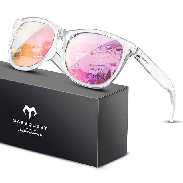 [MARSQUEST] サングラス メンズ 偏光サングラス 運転用 ウェリントン型 UV400 紫外線カット バイク用サングラス 抗衝撃 スポーツ ドライブ ランニング 釣り 登山 おしゃれ ファッション ユニセックス momentumシリーズ (薄ピンク)