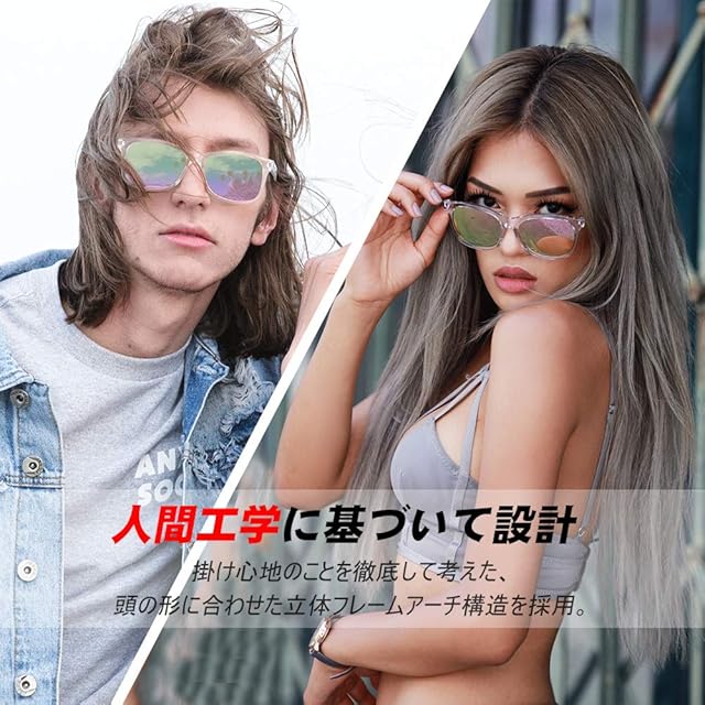 【7枚4層コーティング技術加工した偏光レンズ】偏光レンズは偏光膜という特殊フィルムが挟み込まれている特殊レンズです。表面に特殊な七つコーティング技術加工しています、1枚目の層は、偏光層です。2、3枚目の層は、耐久性を増すために、層を結合しています。4、5枚目の層は、紫外線を吸収するUV保護層です。6、7枚目の層は、飛散防止層です。UVA・UVB・UVC&目に有害なブルーライトを100%カットします。眩しさや乱反射光を効果的にカットし、より快適な視界を確保することができます。