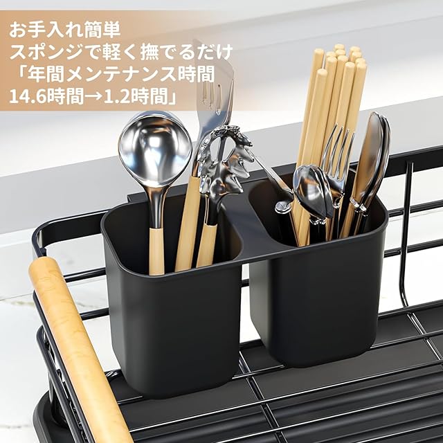 SVOHZAV 水切りラック 食器乾燥 シンク上水切りラック 大容量 キッチン 食器置き 水切りかご 洗いカゴ ディッシュラック 収納 皿立て 洗い物水切り (ブラック, BS038)