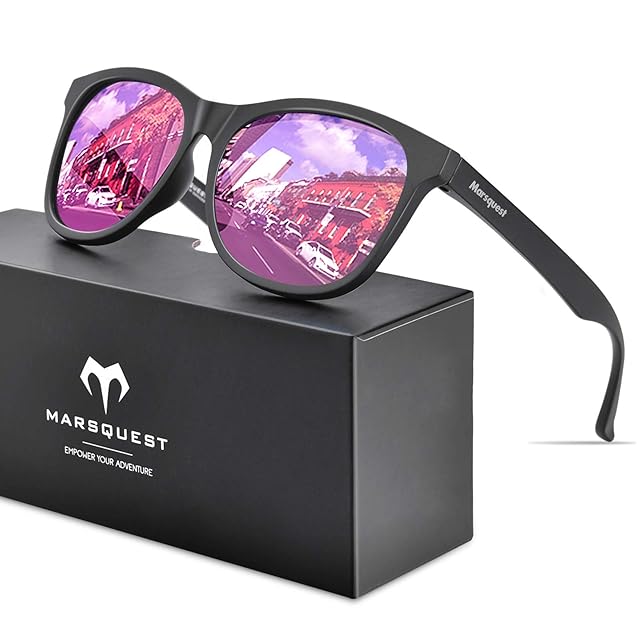 [MARSQUEST] サングラス メンズ 偏光サングラス 運転用 ウェリントン型 UV400 紫外線カット バイク用サングラス 抗衝撃 ユニセックス momentumシリーズ (ホットピンク)