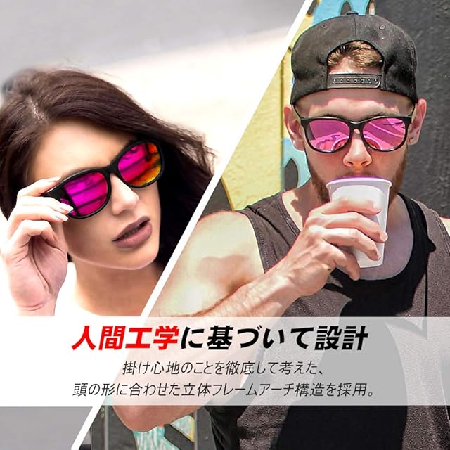 商品名:[MARSQUEST] サングラス メンズ 偏光サングラス 運転用 ウェリントン型 UV400 紫外線カット バイク用サングラス 抗衝撃 ユニセックス momentumシリーズ (ホットピンク)
