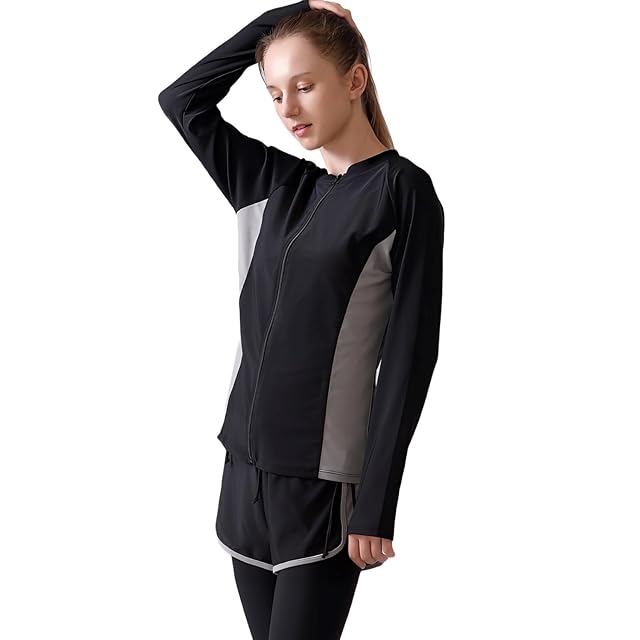 商品名:【皮膚科医監修】 水着 レディース タンキニ 体型カバー フィットネス ラッシュガード 5点セット UPF50+ UVカット率100% (JP, アルファベット, 4L, グレー×ブラック)