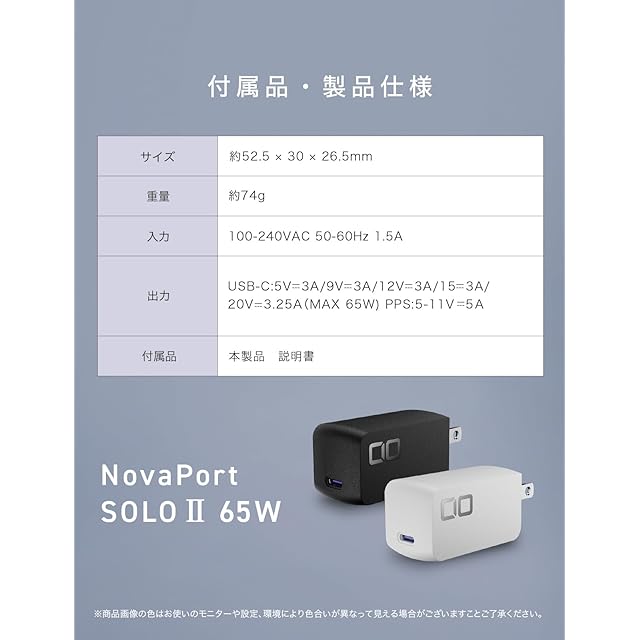 商品名:CIO NovaPort SOLOⅡ 65W USB-C急速充電器【世界最小級/NovaSafety2.0搭載・動作時 最大55W】単ポート PD対応 ACアダプター ノートPC/iPhone/Android/MacBook/iPad向け (ホワイト)