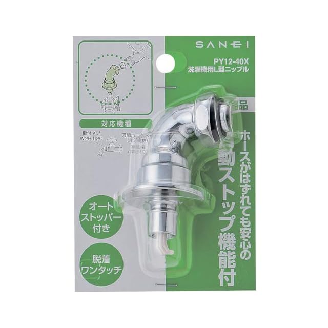 SANEI(サンエイ) 洗濯機用L型ニップル 自動止水機能付き 万能ホーム水栓用 W26山20 PY12-40X