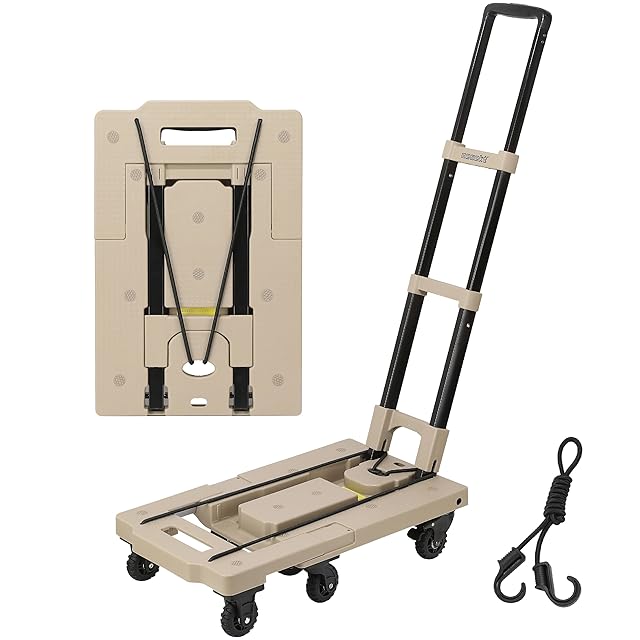 [ネセクト] 折りたたみ式台車 ストッパー付き静音車輪 耐荷重150kg 軽量コンパクト 固定用ゴムロープ付属 平台車 車載 防災用[日本国内企画品] (サンドベージュ)