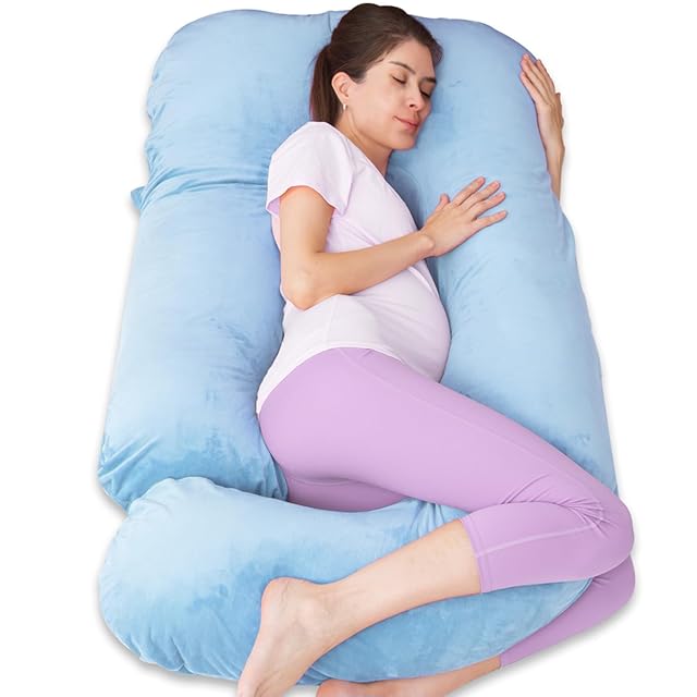 Awesling 抱き枕 妊婦 U字型抱き枕 、全身枕、授乳クッション、妊娠抱きまくら、マタニテイー抱き枕 だきまくら妊婦 快眠 グッズランキング 背もたれ 腰枕 多機能 だきまくら 男性用 女性用 横向き寝 洗える枕カバー付き (ライトブルー)
