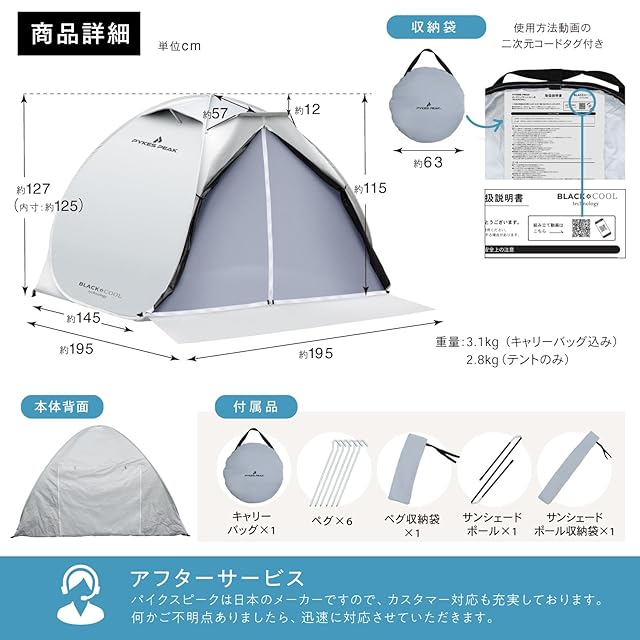 PYKES PEAK (パイクスピーク) ポップアップ テント BLACK COOL 遮光 【遮光率99.99%以上】 サンシェード 簡易テント ペグ・キャリーバッグ付き