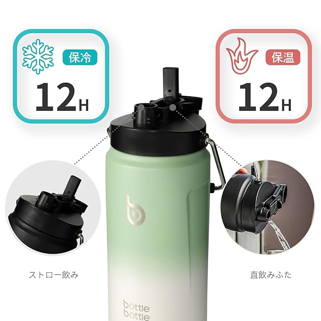 BOTTLE BOTTLE ジャグ 2000ml 水筒 2リットル 注ぎ飲み ストロー飲み 広い口径 洗いやすい 大容量 水分補給 カバー付き ステンレスボトル 保温保冷 男の子 女の子 大人 子供 部活 アウトドア スポーツ グリーン green gray