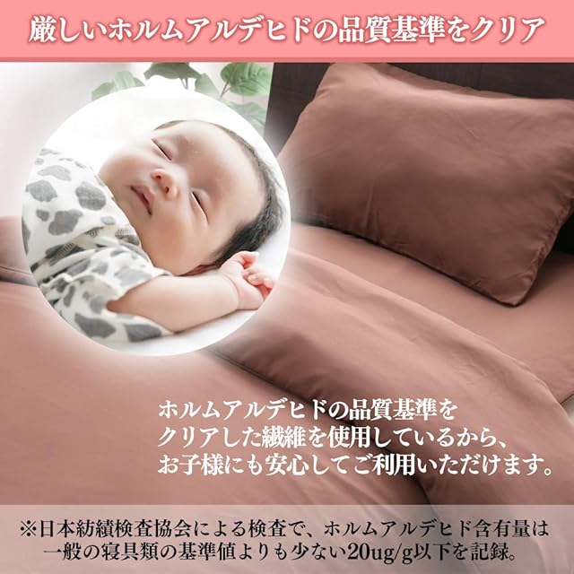 掛け布団、敷布団、枕すべてにピーチスキン加工を施しているので、肌触りがなめらか。