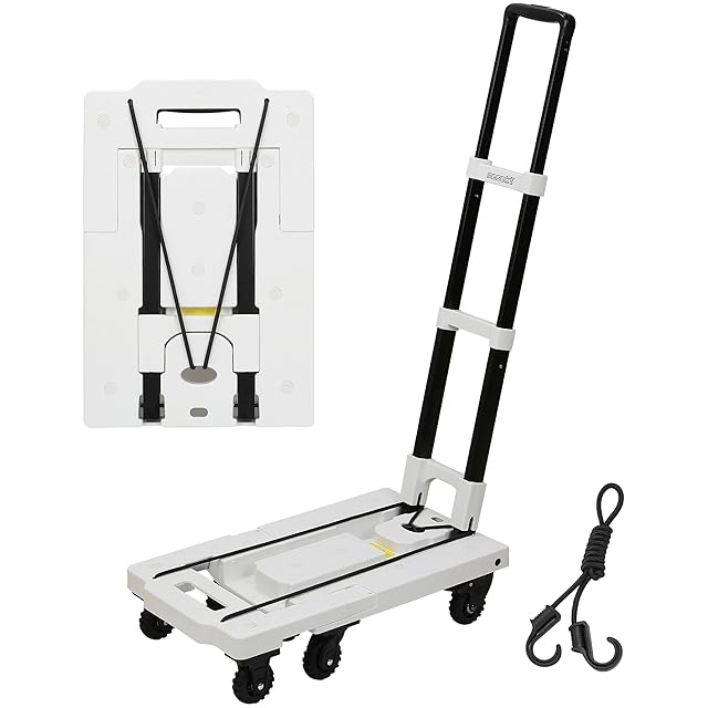 [ネセクト] 折りたたみ式台車 ストッパー付き静音車輪 耐荷重150kg 軽量コンパクト 固定用ゴムロープ付属 平台車 車載 防災用[日本国内企画品] (スノーホワイト)