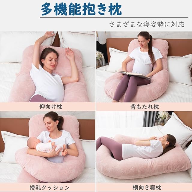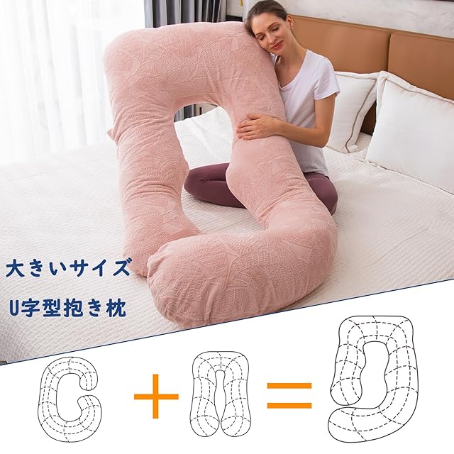 商品名:Awesling 妊婦 抱き枕 U字型抱き枕 、全身枕、授乳クッション、妊娠抱きまくら、マタニテイー抱き枕 だきまくら妊婦 快眠 グッズランキング 背もたれ 腰枕 多機能 だきまくら 男性用 女性用 横向き寝 洗える枕カバー付き(ピンク)