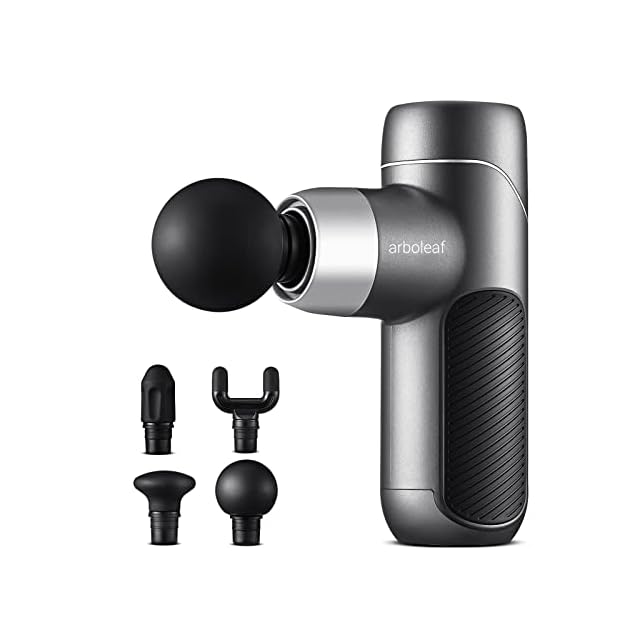 arboleaf 筋膜リリースガン ハンディガン MINI 自適応モード付き 4つのシリコンヘッド付属 5段階強力振動 筋膜リリース 筋膜ガン Type-C充電式 2000mAh*2大容量(8時間以上連続使用) 370g軽量 最速3000回/分 静音 携帯便利 収納袋&日本語取扱説明書付き プレゼント ギフト最適 日本国内サポート 一年メーカー