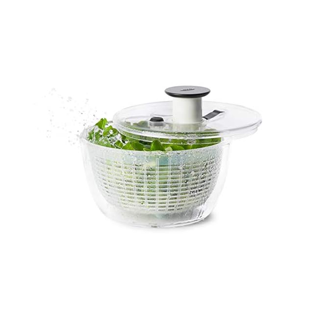 OXO サラダスピナー 野菜水切り器 小 丸型 2~3人分 一人暮らし 20.5×20.5×12cm 食器洗い乾燥機(低温設定)可