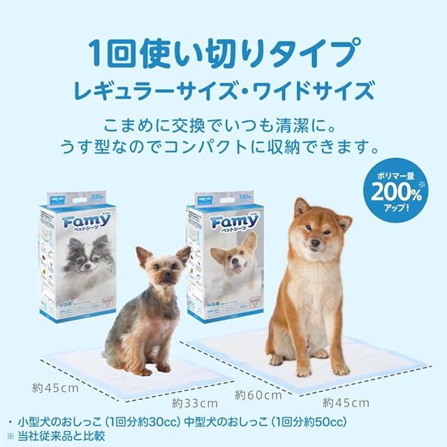 Famy(ファミー) ペットシーツ W消臭 うす型 ワイド 100枚入り JPPMA認証 薄型 1回使い切りタイプ
