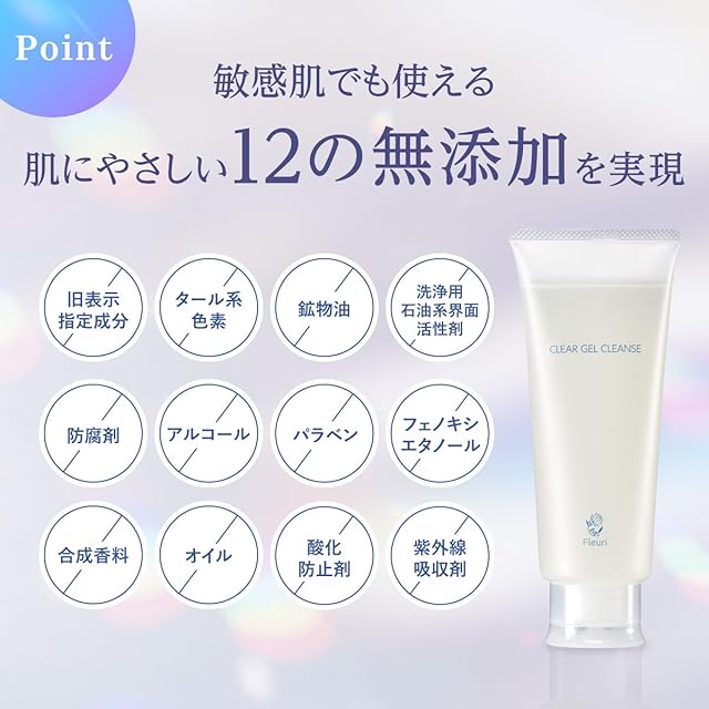 【フルリが選ばれる理由】 美容のプロとして素肌を深く追求してきた私たちには、これまで培ってきたノウハウがあります。 そのノウハウを、全ての方へお届けするために誕生したブランドです。 フルリの製品には私たちの自信と責任が詰まっています。 ただ単に期待にお応えするだけではなく無添加*¹にもこだわりを持った製品です。 【汚れ落とし×肌へのやさしさを両立したクレンジングジェル】 クリアゲルクレンズは、高機能還元水「クリアドロップ*²」をベースに使用。 クリアドロップ*²の5つの特徴 ・肌との親和性が高く、メイクを浮かび上がらせやすくする。 ・肌を清浄にし、整える。 ・肌をすこやかに保つ。 ・肌をやわらかにする。 ・乳化力に優れている(低クラスター)ため、混ざり合わない成分を融合させる為の、乳化剤(多くは洗浄用石油系界面活性剤)などを使用する必要がない。 クリアドロップ*²をベースにすることで、こすらず肌への負担を極限まで減らしながら汚れを除去します。 【内容量】1本150g 約1か月分 【原産国】日本 *1洗浄用石油系界面活性剤・鉱物油・アルコール・パラベン・フェノキシエタノール・タール系色素・合成香料・旧表示指定成分・紫外線吸収剤・防腐剤 *2整肌洗浄作用