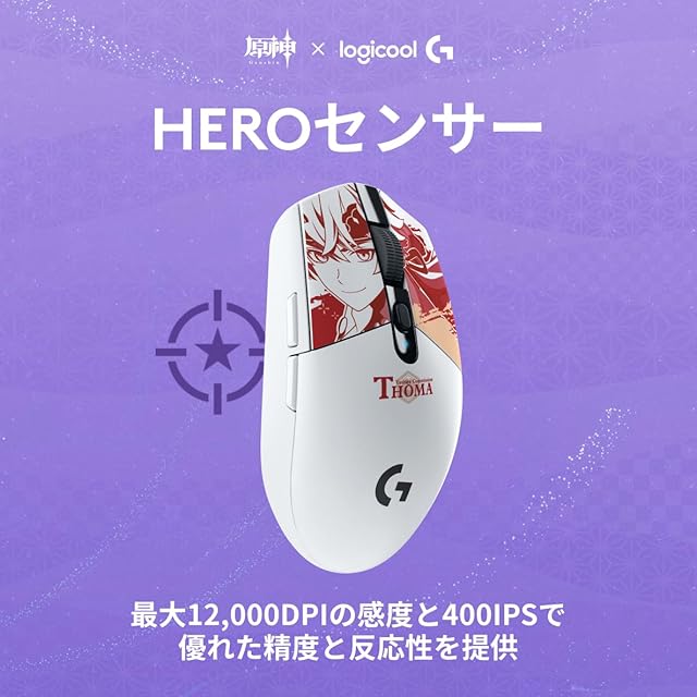 Logicool G 原神 トーマ 特別モデル ゲーミングマウス G304 LIGHTSPEED ワイヤレス マウス G304-GE-TH 軽量 HERO 12Kセンサー 6個プログラムボタン 250時間連続使用可能 ホワイト 無線 ゲーミング PC windows mac 国内正規品