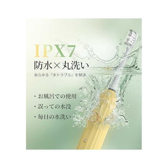 【抜群な高速音波技術採用 ・静音設計 ・IPX7防水】デュポン社製の極細毛ブラシを採用し、『ハイテク磁気浮上式モーター』を搭載し、高速音波振動と振幅でし歯垢をかき出して、歯間や歯ぐきの汚れをやさしく落とします。55dBの低ノイズ設計で、IPX7防水性能も持っており、シャワー中やお風呂でも安心してご使用可能な音波振動歯ブラシです。