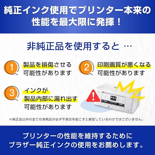 非純正インクをお使いになりますと製品本体の性能を十分に発揮できないだけでなく製品本体を損傷させる可能性がありますのでご注意ください。