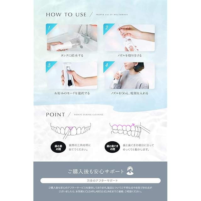 CLEARLABO 口腔洗浄器 ジェットウォッシャー【日本企業企画×現役歯科医師監修】歯間ケア 口腔ケア 300ml 替えノズル3本付き コードレス ギフト プレゼント