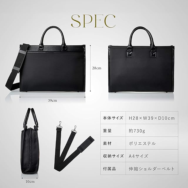 ✅ 【商品仕様】 本体サイズ:約39cm × 28cm × 10cm 重さ:約730g 素材:ポリエステル 対応PCサイズ:13.3インチまで カラー:ブラック・ネイビー 付属:ショルダーベルト付き(長さ調整可)